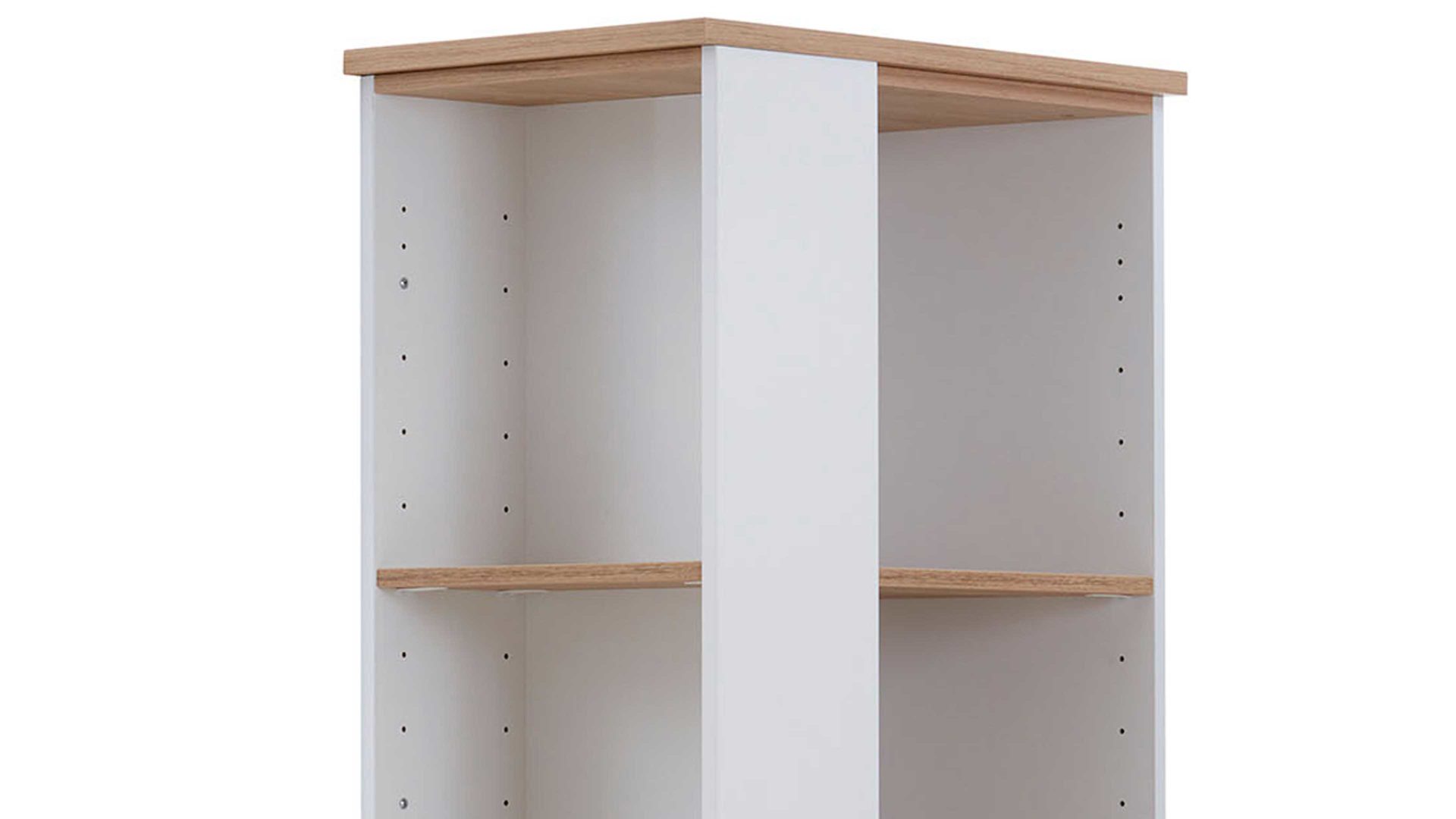 Das hochwertige PAIDI Eck-Regal Oscar begeistert mit der Kombination aus Nebraska-Eiche-Nachbildung und kreideweißen Melaminoberflächen. Letztere zeichnen sich durch ihre Lichtechtheit sowie die besonders ausgeprägte Kratz- und Stoßfestigkeit aus. Überdies sind sie sehr pflegeleicht. Der Holzton verströmt warmen, natürlichen Charme und harmoniert wunderbar mit dem Kreideweiß. Zusammen sorgen die Nuancen für eine moderne und elegante Optik.