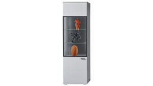 eintürige Glastür-Vitrine, nach links zu öffnen - mit jeweils zwei Glasböden und zwei Holzböden