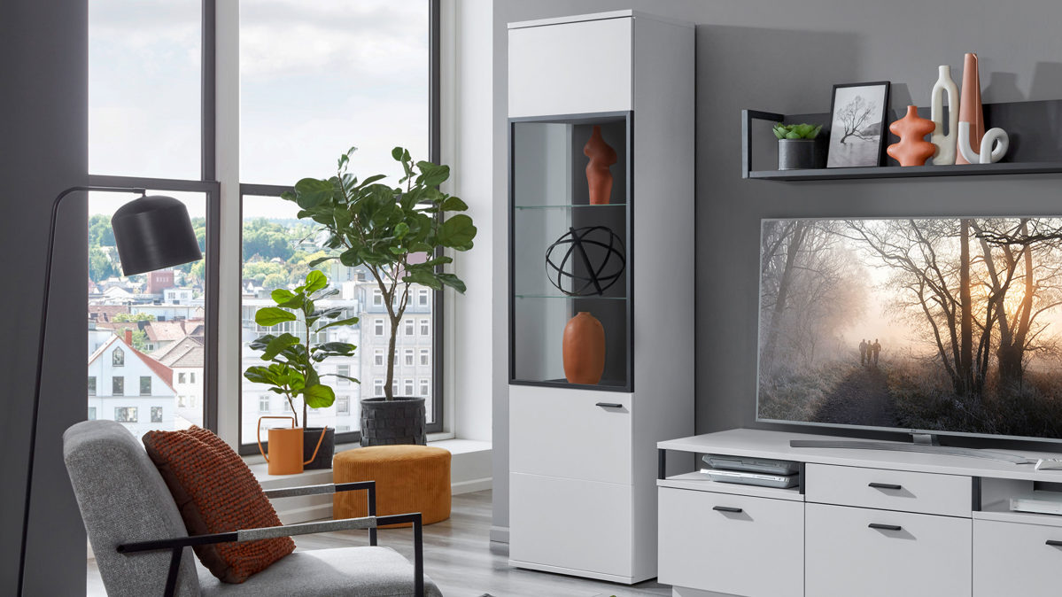nach Wunsch kombinierbare Wohnmöbel, mit LED-Beleuchtung ergänzbar