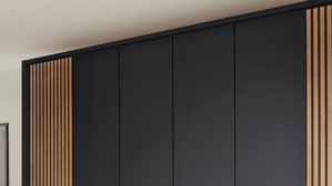 mattes Graphit, kombiniert mit biancofarbener Eiche Nachbildung und mattschwarzen Griffen
