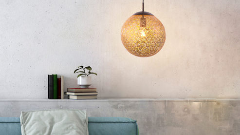 Ein Materialmix aus rostfarbenem Metall und goldfarbenen Lampenschirm erzeugt einen besonders wertigen Look. So unterstreicht die formschöne Hängeleuchte den edlen Stil eines jeden Einrichtungskonzeptes. Setzen Sie die Lampe sowohl als Lichtquelle als auch als geschmackvolles Dekoobjekt im Wohnbereich, Flur oder Schlafzimmer ein.