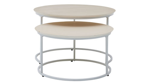 | Maße Einzelartikel: | Durchmesser großer Tisch ca. 75 cm, Höhe ca. 45 cm Durchmesser kleiner Tisch ca. 65 cm, Höhe ca. 35 cm | |