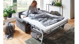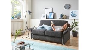 Das hochwertig verarbeitete Comfortmaster Schlafsofa Molto begeistert in puncto Design und ist darüber hinaus ein echtes Funktionswunder, lässt es sich doch im Handumdrehen von der Couch in ein bequemes Faltbett verwandeln. Für die nötige Robustheit und Stabilität sorgt das erstklassige Metallgestell.