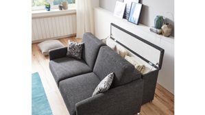 Der Liegekomfort der Faltbett-Funktion überzeugt ebenso. Dies gewährleistet die starke Metallrahmenunterfederung mit Gurten, widerstandsfähigen Federholzleisten und einer Kaltschaummatratze. Gegen Mehrpreis ist das Schlafsofa Molto auch mit einer Andor-Flexmatratze oder 7-Zonen-Kaltschaummatratze und weiteren Funktionen lieferbar.