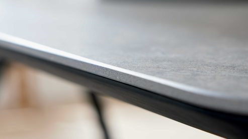 Der moderne Esstisch aus der Interliving Esszimmer Serie 5115 setzt auf moderne Materialien und eine klare Formensprache. Die rechteckige DEKTON®-Tischplatte in Grafitte bringt eine matte Steinoptik mit abgerundeten Kanten in deinen Essbereich – robust, stilvoll und absolut alltagstauglich. Getragen wird die Platte von einem anthrazitfarben pulverbeschichteten Flachstahlgestell, das dem Tisch eine stabile, moderne Basis gibt.