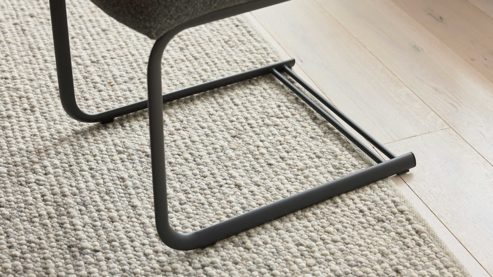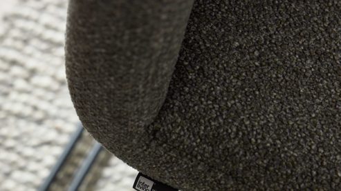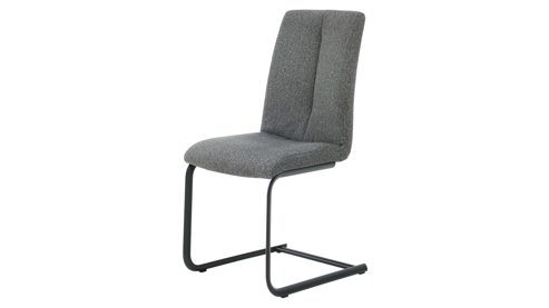Zu dem Tisch gehören sechs Schwingstühle mit einem olivfarben melierten Webstoffbezug und einem matt anthrazitfarbenen Metallgestell. Die Stühle sind mit Kunststoffgleitern ausgestattet, wodurch sie sich bodenschonend verschieben lassen. Mit einer Sitzhöhe von ca. 50 cm und Maßen von ca. 48 x 97 x 63 cm (BxHxT) bieten die Freischwinger ein ergonomisches Sitzgefühl und hohen Komfort. Die angenehme Polsterung und die weiche Haptik des Bezugstoffs sorgen für entspanntes Sitzen über Stunden hinweg.