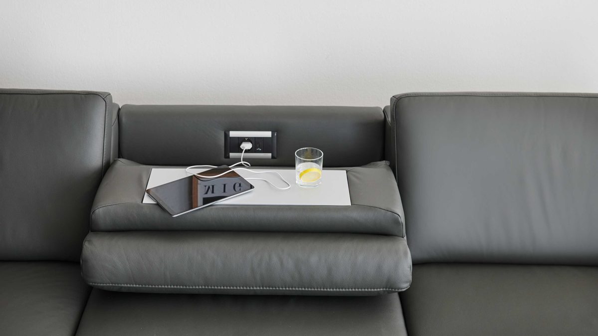 Die Funktionsablage wird in Europa gefertigt und steht für hochwertige Verarbeitung, langlebige Materialien und durchdachte Technik. Die ideale Ergänzung, wenn Sie praktische Ablage, integrierte Ladefunktionen und modernes Design in Ihrem Sofa vereinen möchten.