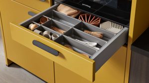 WERT KÜCHE® Vanessa mit Einbaugeräten – ausdrucksstark in Olivegelb und Eiche Siena