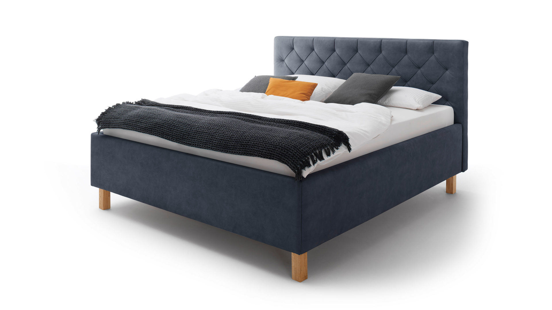 taubenblauer Bezug Bulus 16 & eichefarbene Holzfüße - Liegefläche ca. 180 x 200 cm
