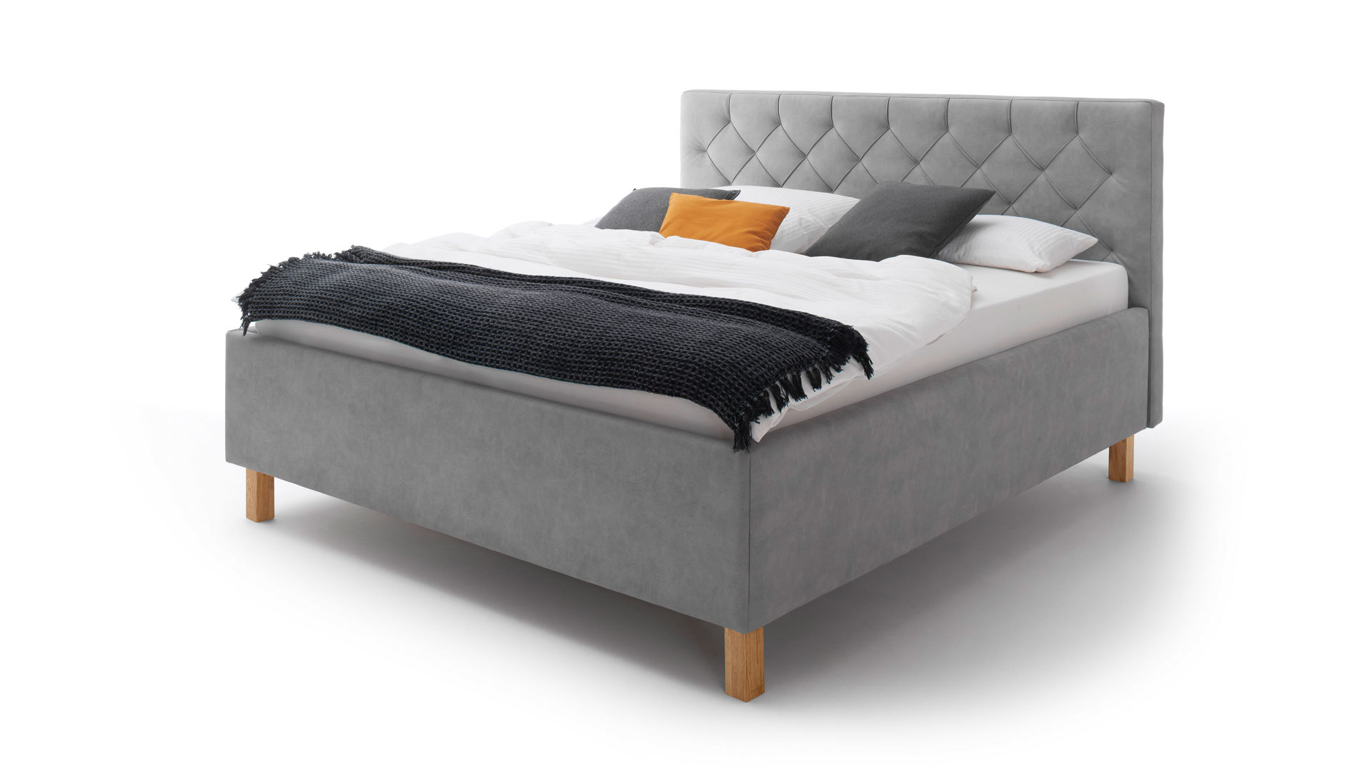 hellgrauer Bezug Bulus 32 & eichefarbene Holzfüße - Liegefläche ca. 180 x 200 cm