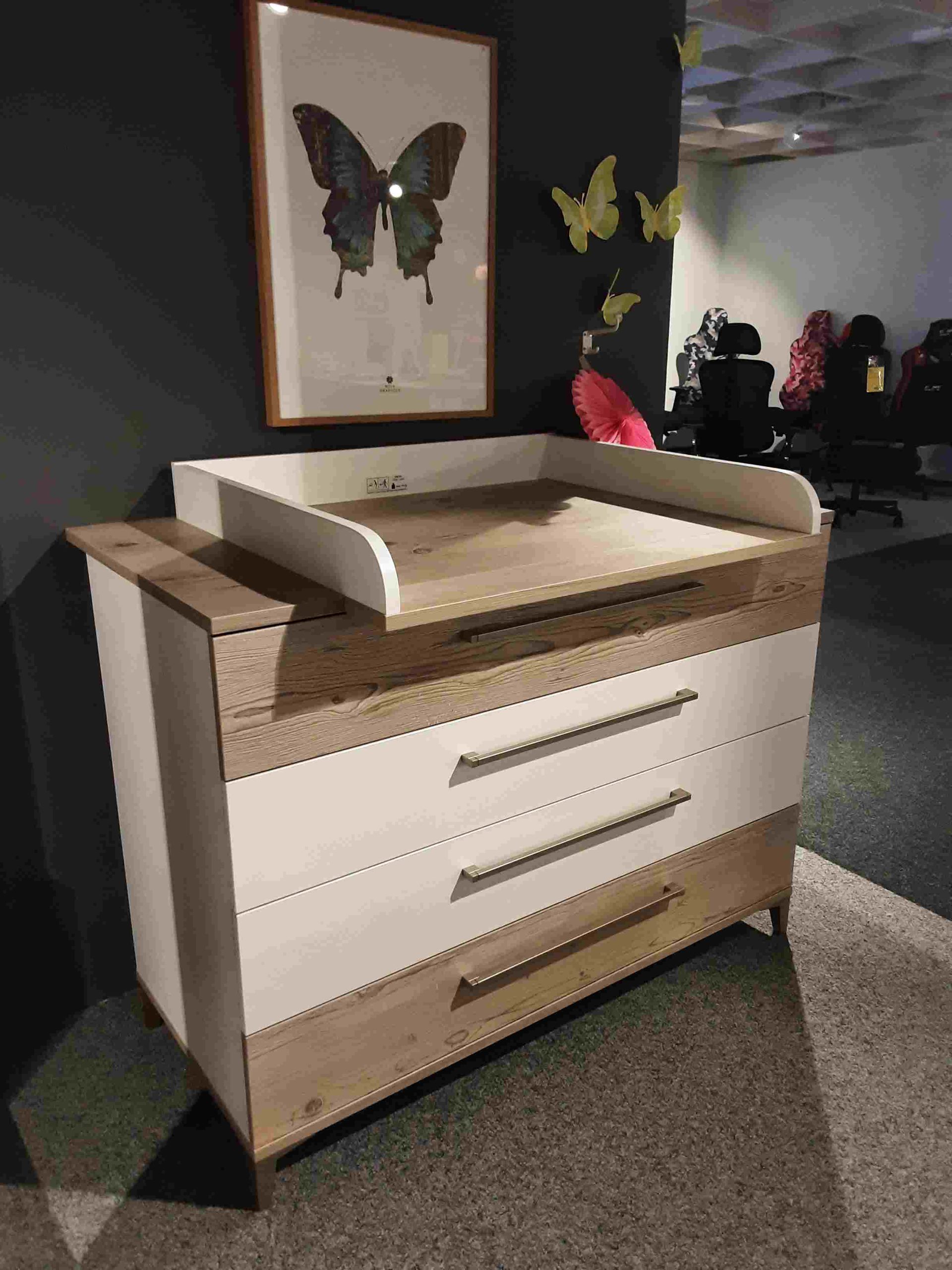 Kreideweiß & Vintage Fichte , Kleiderschrank, Babybett, Kommode, Wickelaufsatz,