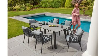 Aluminium matt anthrazit, Gardino-Geflecht grau,Kissen blau-grau